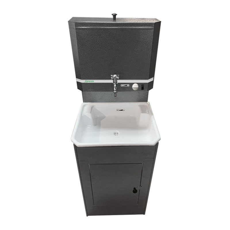 Сборно-разборный каркас умывальника изготовлен из металла и окрашен специальным антикоррозийным полимерным покрытием для защиты металлоконструкции от попадания влаги и от ржавчины.
