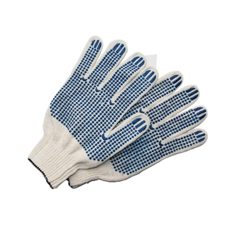Перчатки ХБ с ПВХ 10 класс 5-нитка Белые синяя точка цена за пару (10/400)