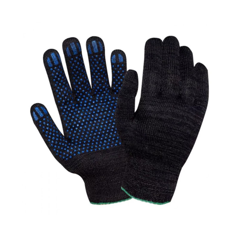Перчатки ХБ с ПВХ 10 класс 5-нитка Черные синяя точка цена за пару (10/400)