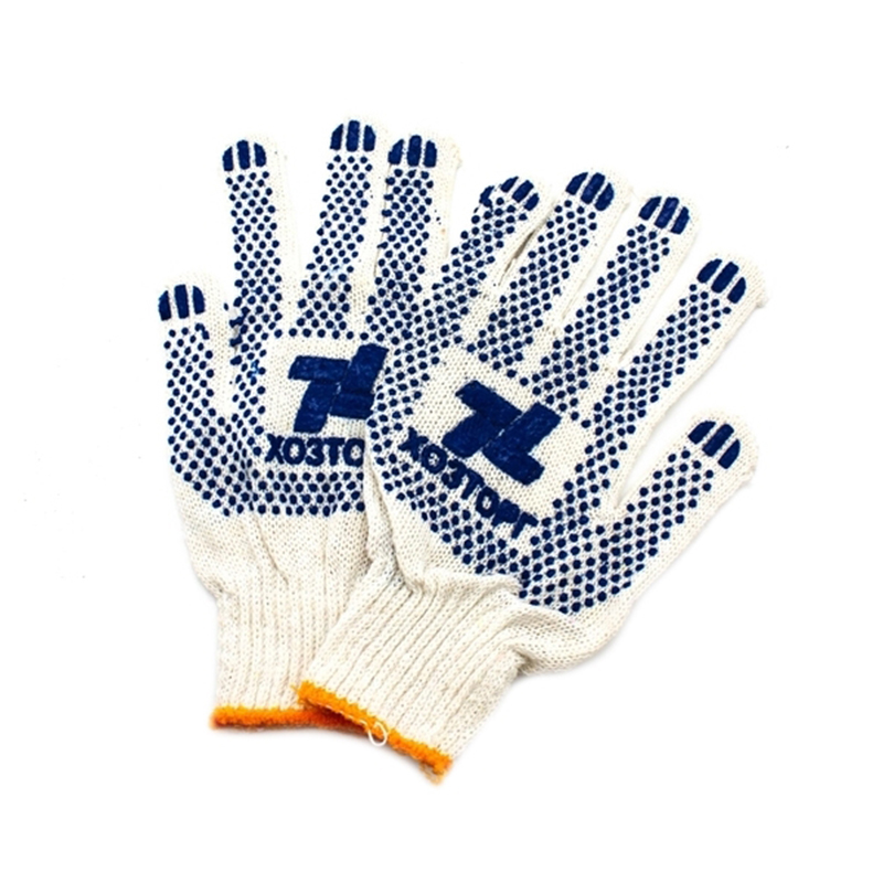 Перчатки ХБ с ПВХ 7,5 класс 4-нитка Белые синяя точка цена за пару (10/500)