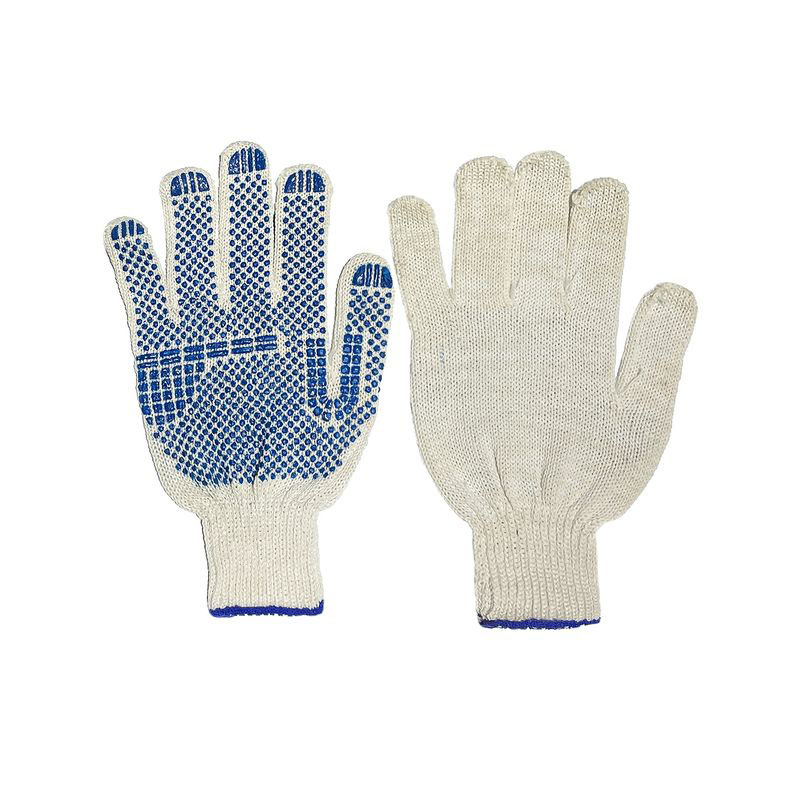 Перчатки ХБ с ПВХ 7,5 класс 5-нитка Белые синяя точка цена за пару (10/400)