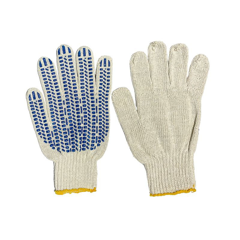 Перчатки ХБ с ПВХ 7,5 класс 7-нитка Белые синяя точка цена за пару (10/300)