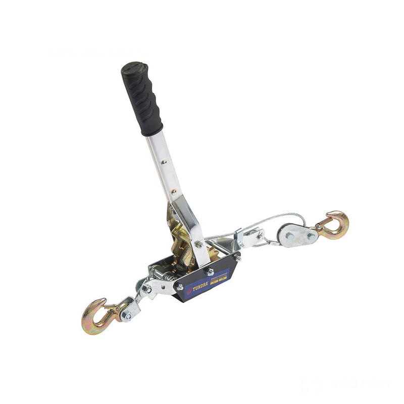 Рычажная лебёдка проста в эксплуатации: один конец двухметрового троса крепится к грузу, второй – к прочному упору. Вам остаётся лишь несколько раз надавить на рычаг, и дело сделано.