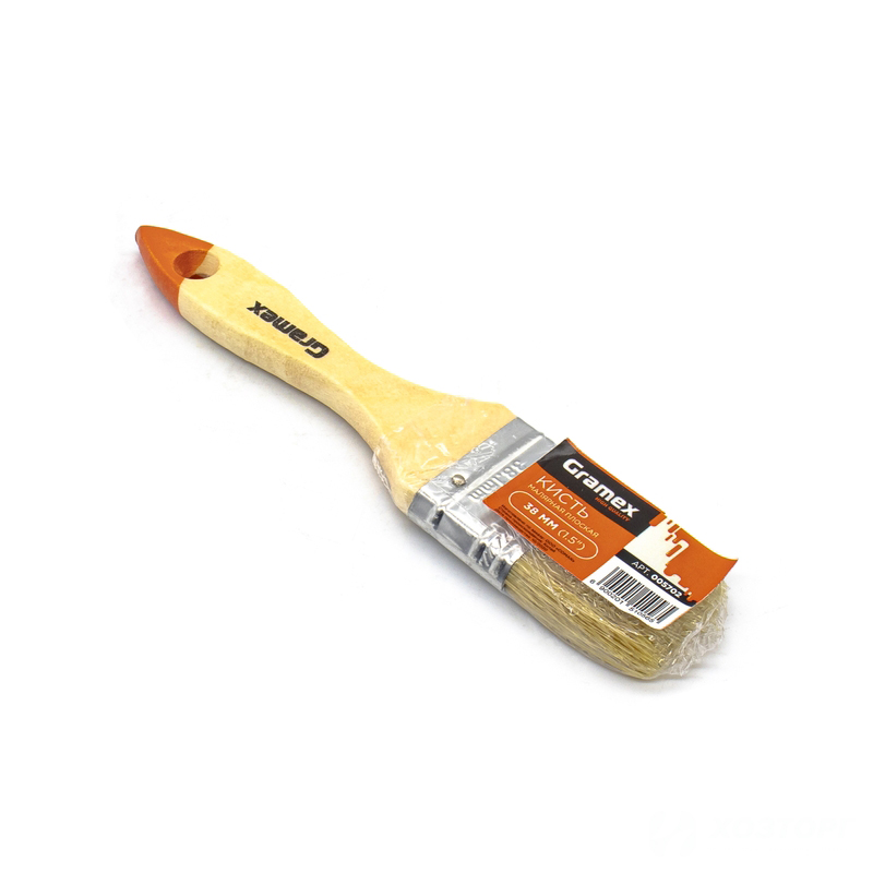 Кисть плоская 38 мм (1,5") "Стандарт" с деревянной ручкой, искусcтвенная щетина GRAMEX (12/600)