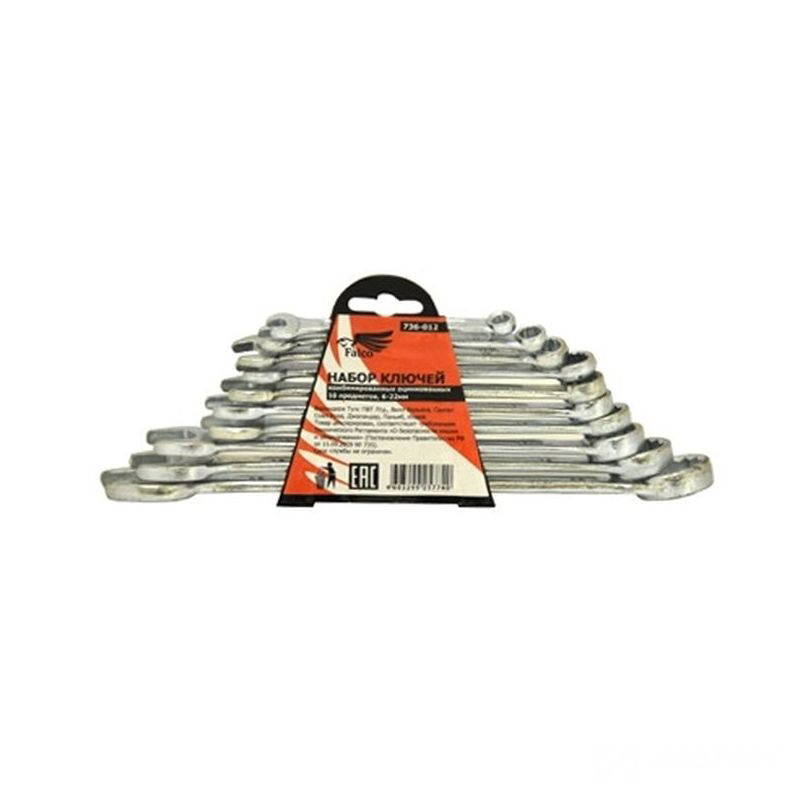 Набор ключей комбинированных, 10 предметов в пластиковом подвесе оцинкованных FALCO 736-012 (5/30)