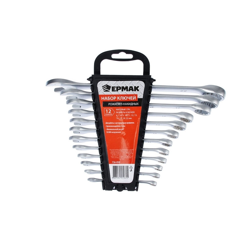 Набор ключей комбинированных, 12 предметов в холдере, матовых ЕРМАК 736-050 (6/20)