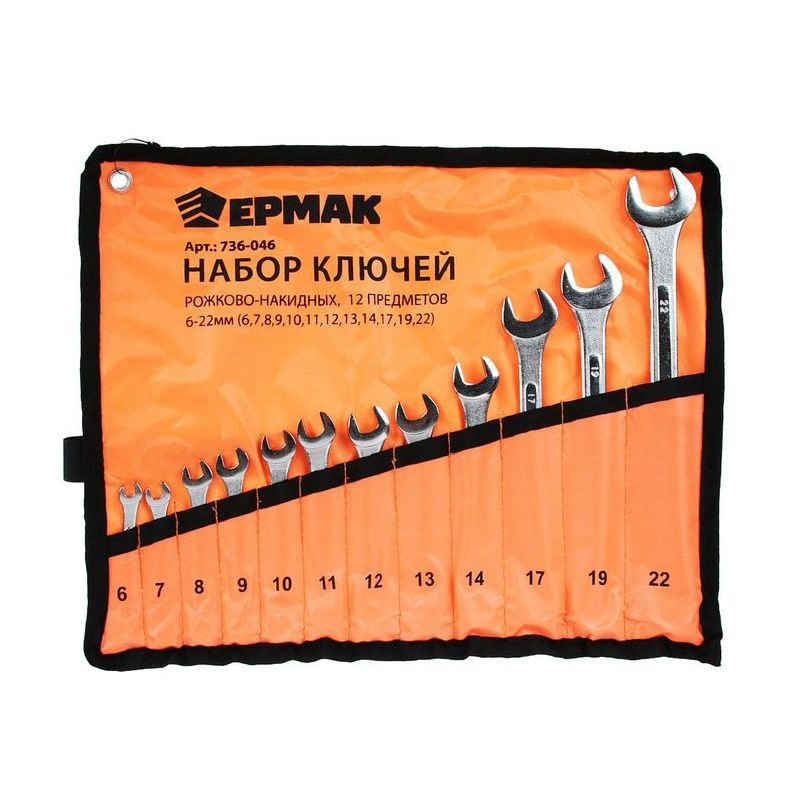 Набор ключей комбинированных в сумке, 12 предметов усиленных хромированных ЕРМАК 736-046 (4/16)