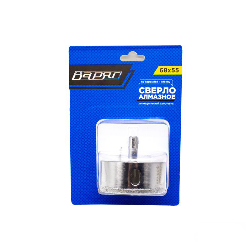 Сверло алмазное по керамической плитке и стеклу 68х55 мм, цилиндрический хвостовик ВАРЯГ (4/40)