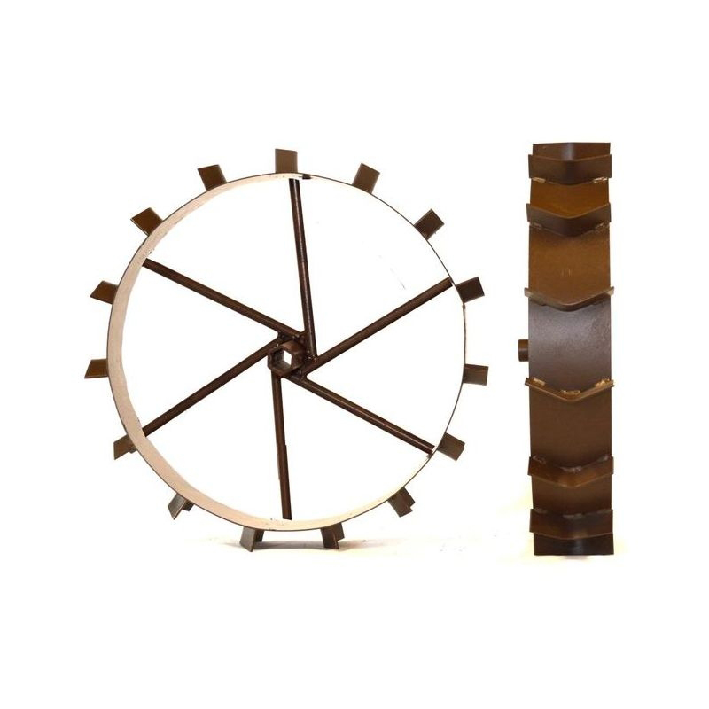 Обод выполнен из сплошной ленты металла,налипание грунта возможно, однако сплошной обод менее подвержен деформациям