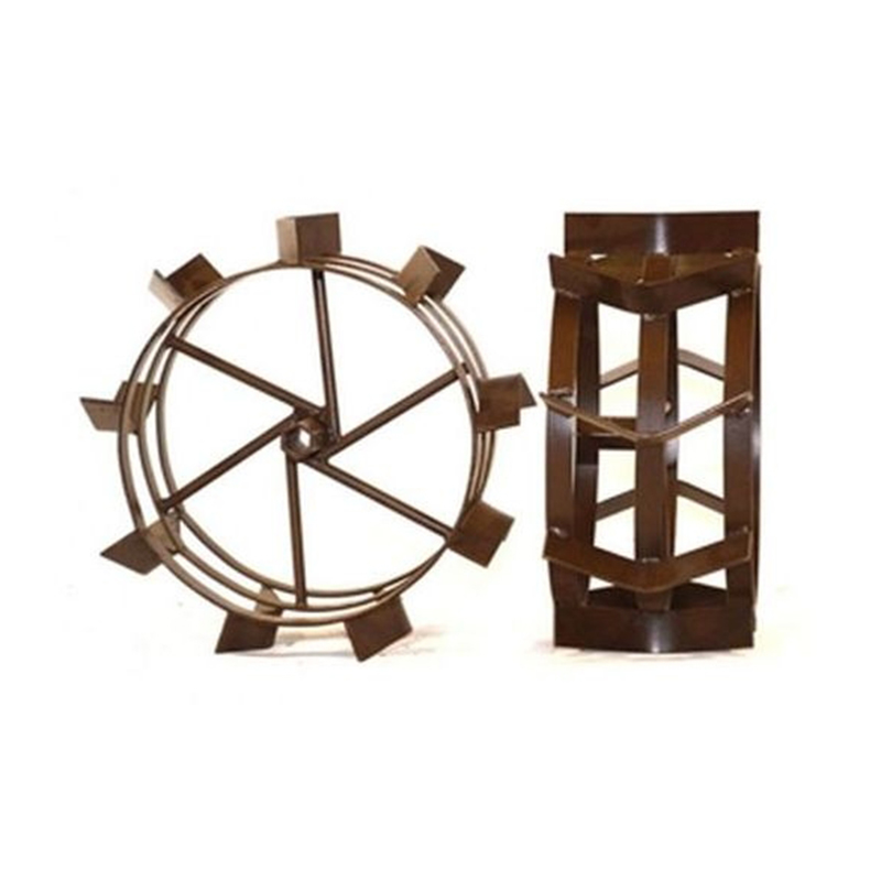 Обод выполнен в виде нескольких полос металла.Почва не налипает, выдавливаясь в пустоты. В результате чего сцепление с грунтом выше.