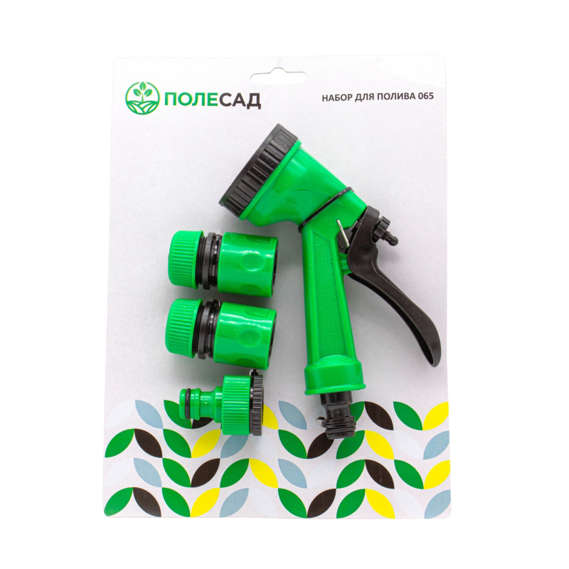 Набор для полива 1/2" ПИСТОЛЕТ 5 РЕЖИМОВ, 2 КОННЕКТОРА 1/2", ПЕРЕХОДНИК 1/2"-3/4, 4 предмета ПОЛЕСАД 065 (1/50)