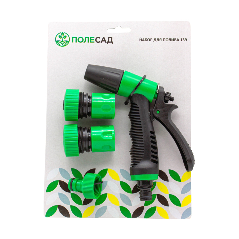 Набор для полива 3/4" ПИСТОЛЕТ , 2 КОННЕКТОРА 3/4, ШТУЦЕР, 4 предмета ПОЛЕСАД 139 (1/50)