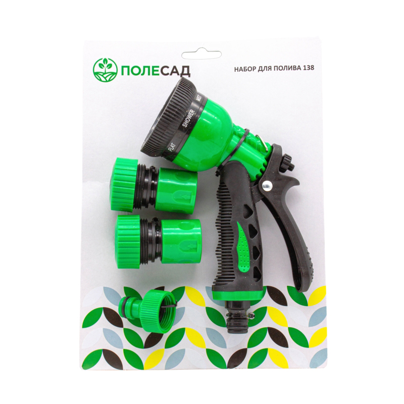 Набор для полива 3/4" ПИСТОЛЕТ 8 РЕЖИМОВ, 2 КОННЕКТОРА, 3/4", СОЕДИНИТЕЛЬ, 4 предметов ПОЛЕСАД138 (1/50)