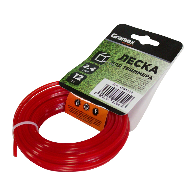 Леска для триммера Gramex 2,4 мм квадрат ,красный 12 метров (5/280)