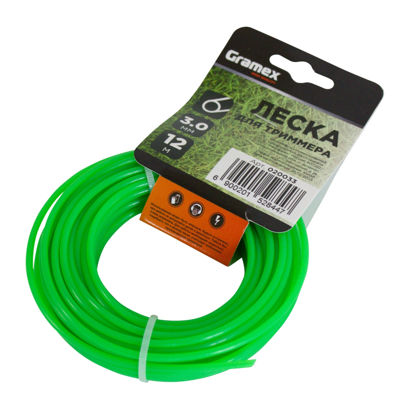 Леска для триммера Gramex 3,0 мм круг ,зеленый,12 метров (5/200)