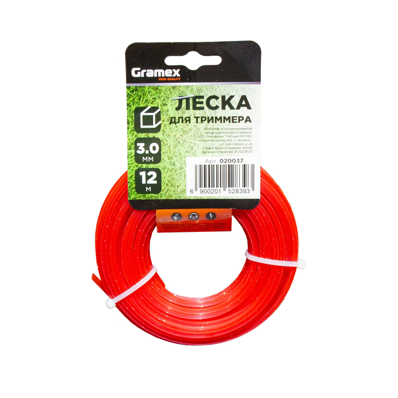 Леска для триммера Gramex 3,0 мм квадрат ,красный 12 метров (5/200)