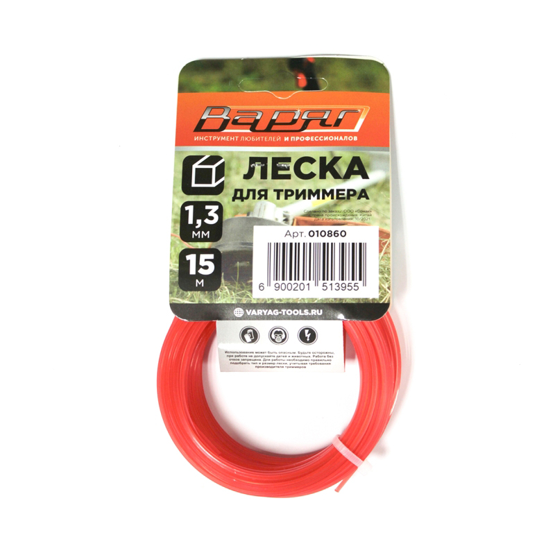 Леска ВАРЯГ 1,3 мм квадрат , красный,15 метров (5/400)