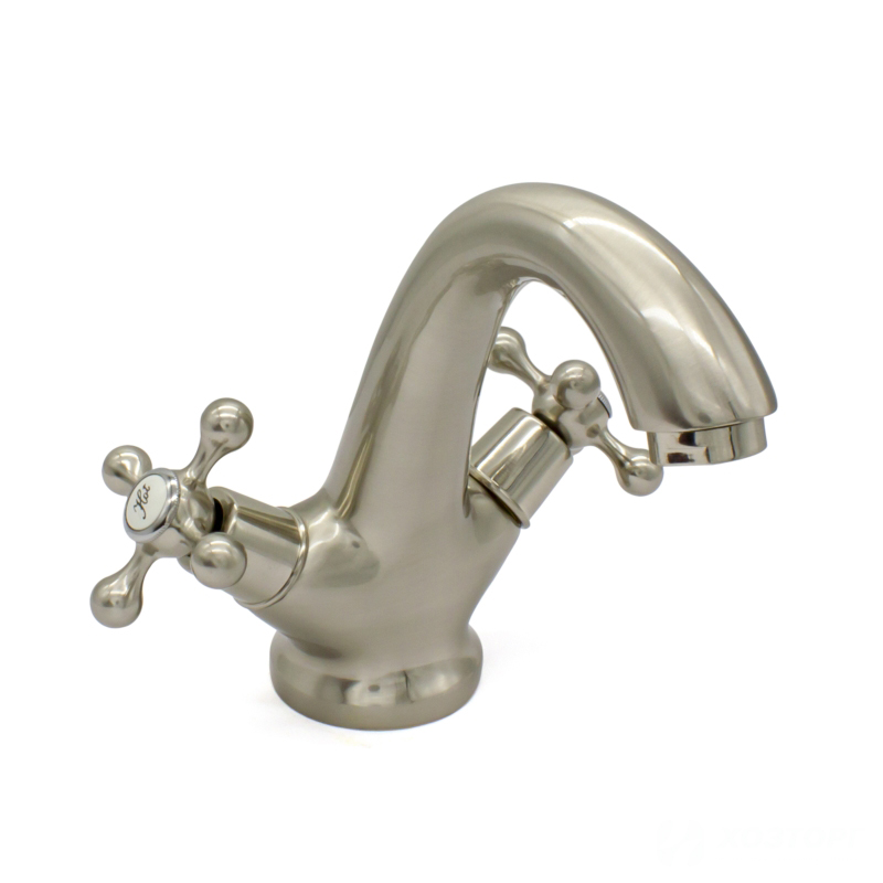 Смеситель д/умывальника DORON DL 1513S, 1/2 керамика, сатин, излив литой нос, п/ш (1/10)
