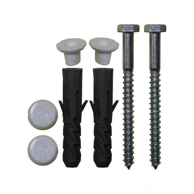 Комплект крепежа унитаза к полу, 2 болта, дюбеля, уплотнитель, заглушки, 00259 (50/500)