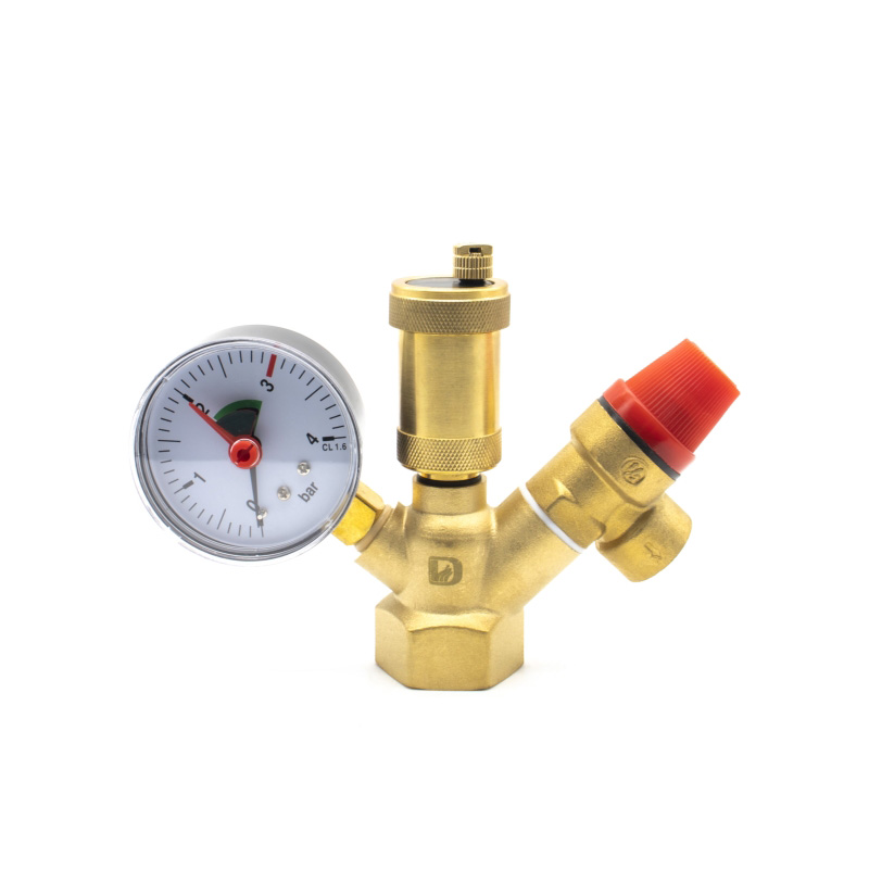 В сущности, это простой элемент состоит из трех разных приборов( манометр,автоматический воздухоотводчик ,сбрасывающий предохранительный клапан), установленных на общем коллекторе.