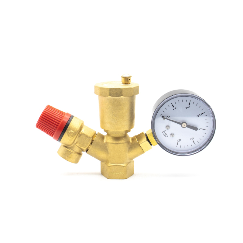 В сущности, это простой элемент состоит из трех разных приборов( манометр,автоматический воздухоотводчик ,сбрасывающий предохранительный клапан), установленных на общем коллекторе.