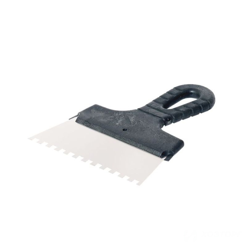 Шпатель зубчатый 250мм, зуб 6х6мм, нержавеющая сталь, пластиковая ручка, ИНТЕК 10103-250-006 (1/25)