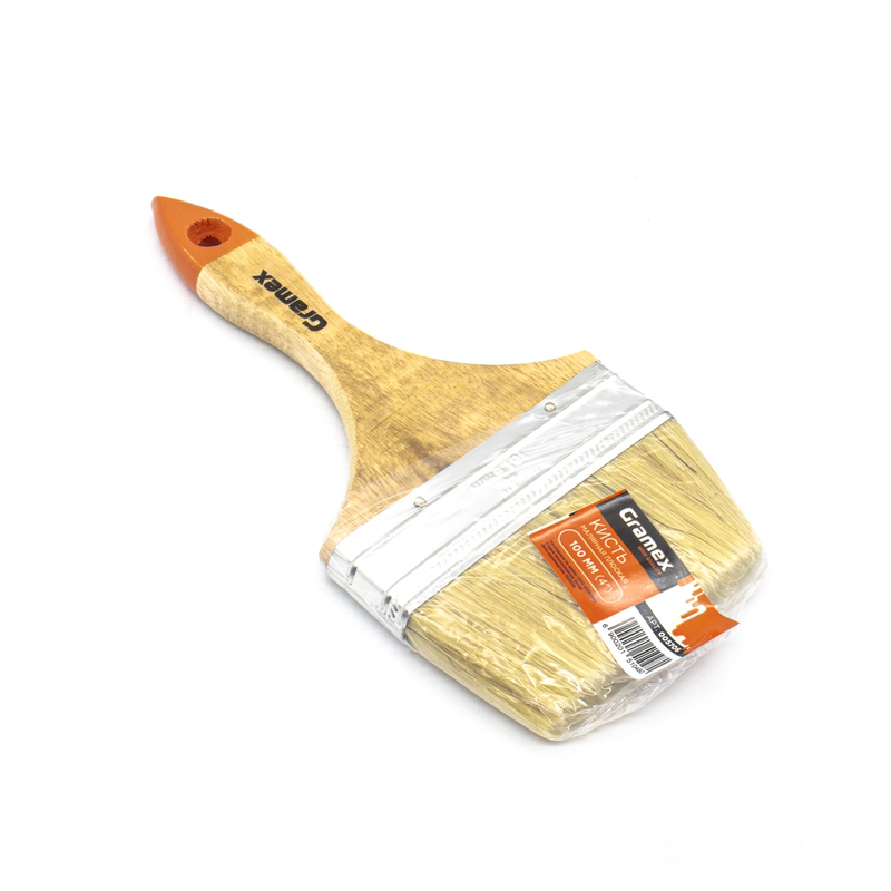 Кисть плоская 100 мм (4") "Стандарт" с деревянной ручкой, искусcтвенная щетина GRAMEX (12/240)