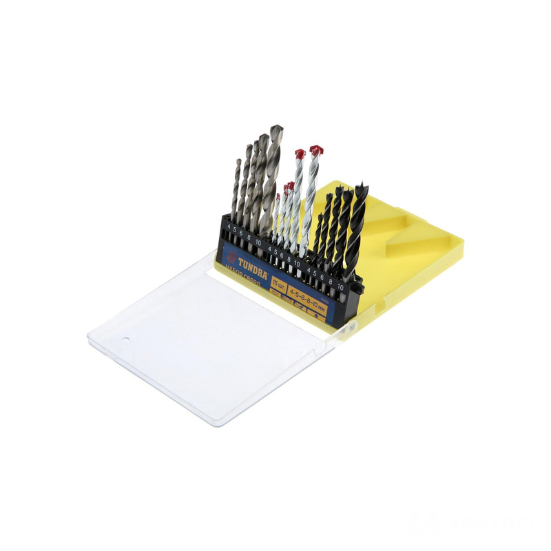 Набор сверл по металлу, бетону, дереву 15 предметов 4-5-6-8-10 мм в коробке TUNDRA 1119725 (1/60)
