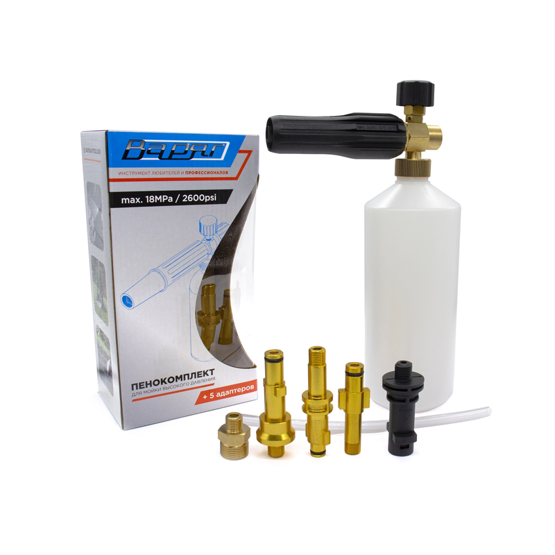 Пенокомплект для мойки Варяг М-102(металлическая рабочая часть +5 адаптеров, бачок 1л)) (1/30)