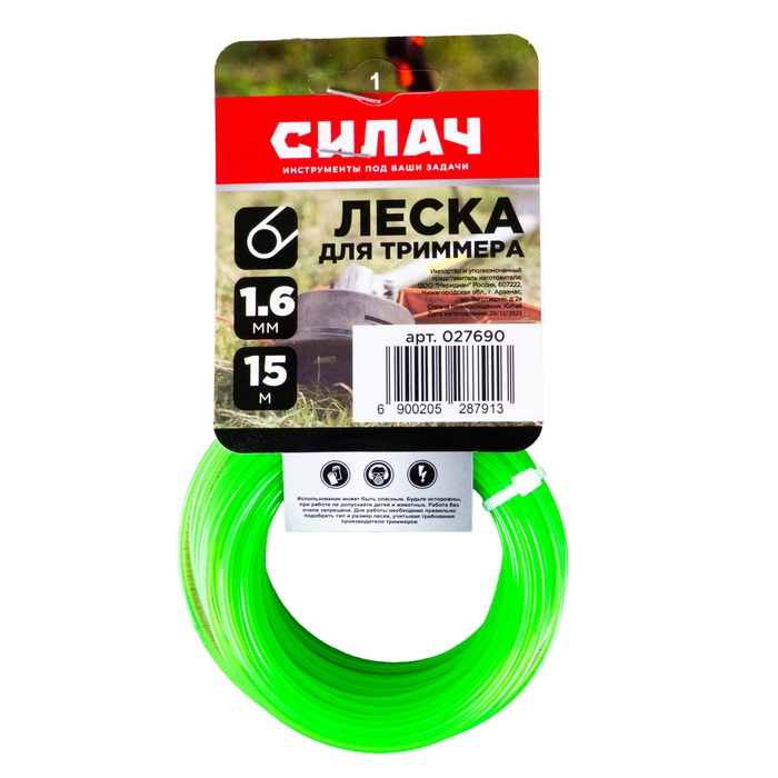 Леска СИЛАЧ 1,6 мм круг, зеленый, 15 метров (5/400)