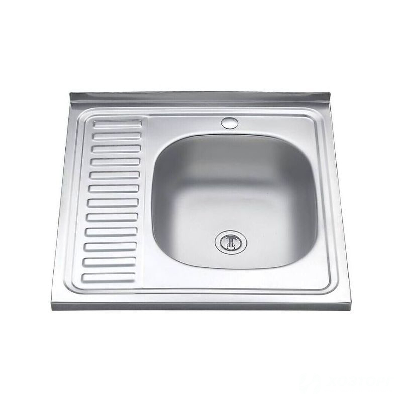 Мойка кухонная накладная 6060 R MELANA MLN6060R-0,6-160 прямоугольная, с сифоном (015 t R) (1/10)