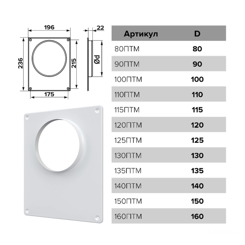Площадка торцевая металлическая, фланец D100 "100ПТМ"/ERA (1/20)