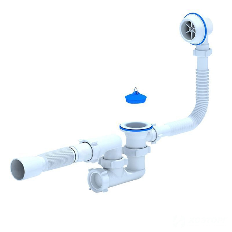 Сифон для ванны 1 1/2" с переливом, с гибкой трубой Ø40/50мм, ревизия, регулир АНИ Варяг С6255 (1/25)
