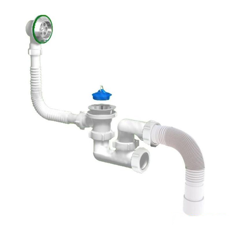 Сифон для ванны 1 1/2" с переливом, с гибкой трубой 40/50мм, ревизия, регулируемый Akvater/САНДЕСАНТ V255-АК (1/30)