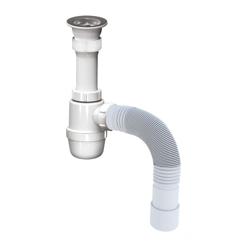 Сифон бутылочный 1 1/2" чашка Ø70мм, гибкая труба Ø40/50мм САНДЕСАНТ S0115-35-АК (1/35)