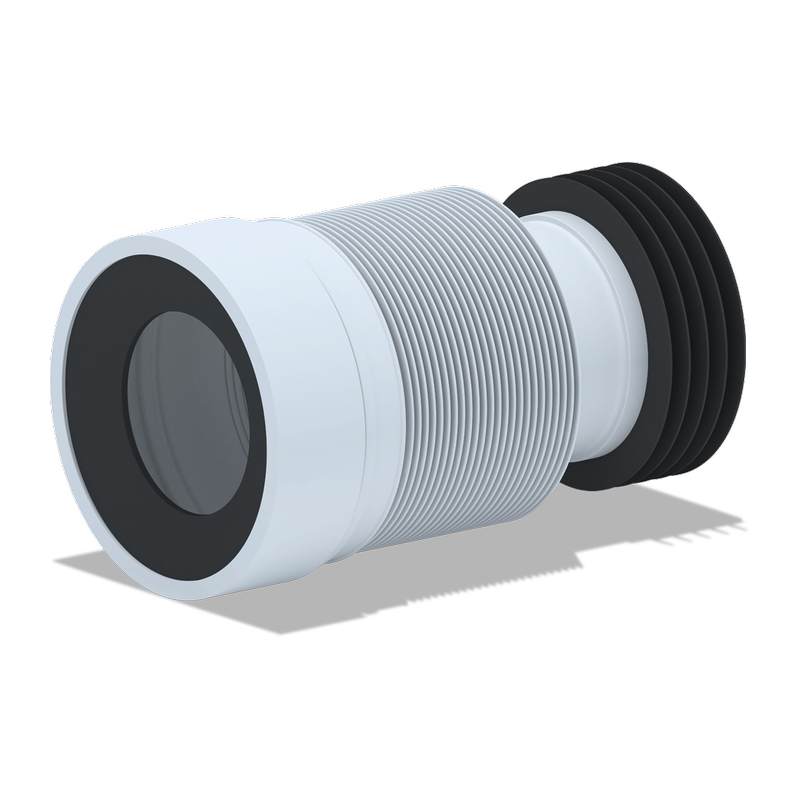 Длина трубы 230-530мм, присоединение к унитазу через резиновую муфту, выход на канализацию 100-110 мм. Удлинители гибкие выполняют функцию фановых труб и предназначены для соединения унитаза с канализационной трубой. Основное преимущество в том, что они легко монтируются и нет необходимости заранее замерять угол и расстояние (как в случае с фановыми трубами).