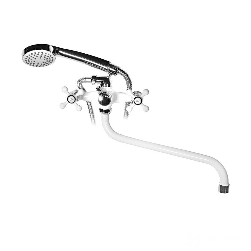 Смеситель д/ванны DORON DВ 1316W -30S, 1/2 керамика, белый/хром. излив 300 мм, лейка 1 режим (1/10)