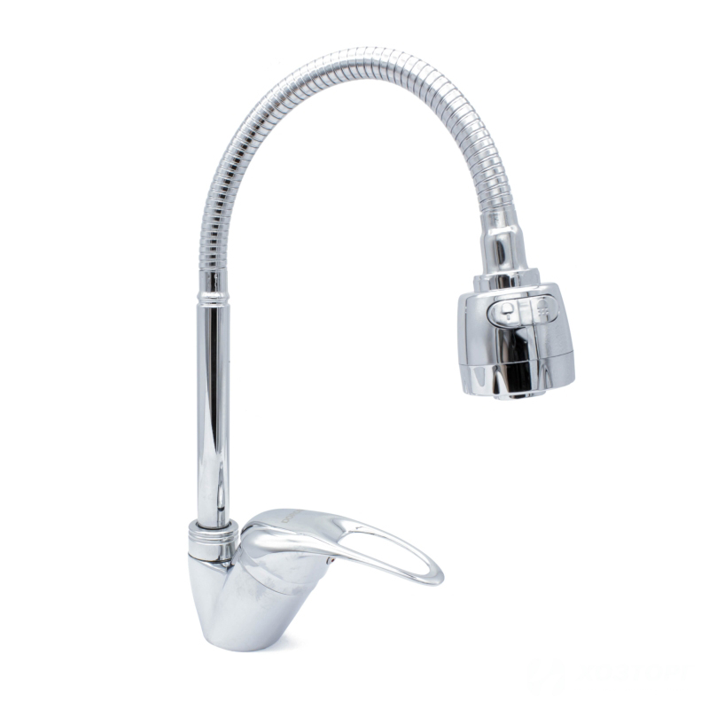 Смеситель д/кухни DORON DС 2838-N, шаровый, хром, излив гибкий гофрированный, п/г (1/10)