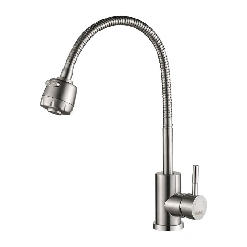 Смеситель д/кухни HAIBA 73304, шаровый, нержавейка, излив гибкий гофрированный, п/г (1/10)