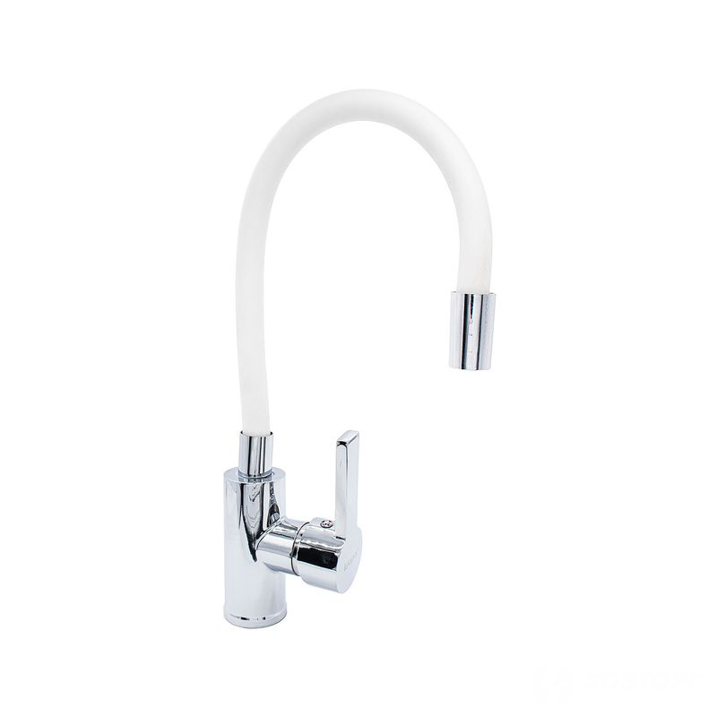Смеситель д/кухни Kranar KC 2626WHITE-N, шаровый, белый, излив гибкий силиконовый, п/г (1/10)