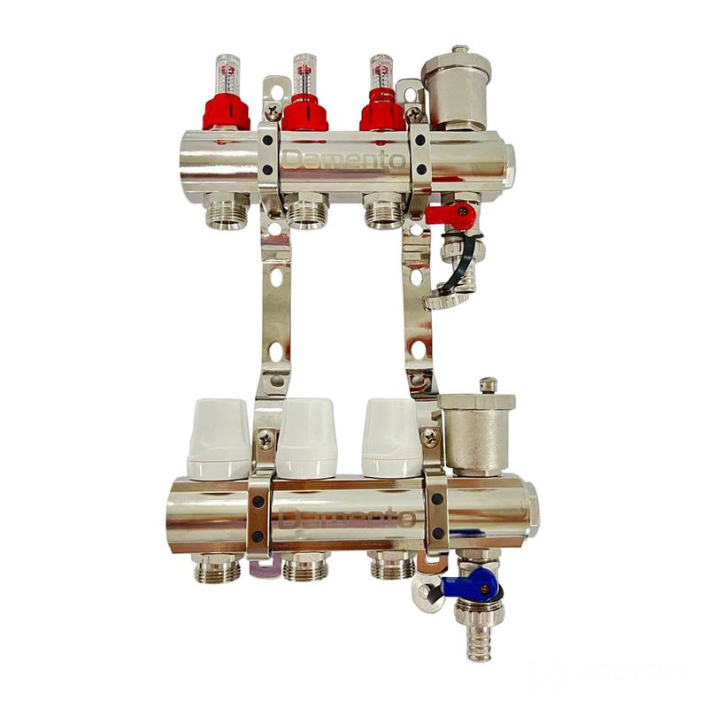 Коллекторная группа 1", 3 хода, латунный корпус с расходомерами Damento Clima DC3 (1/3)