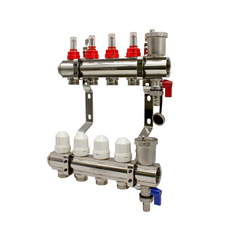 Коллекторная группа 1", 4 хода, латунный корпус с расходомерами Damento Clima DC4 (1/3)