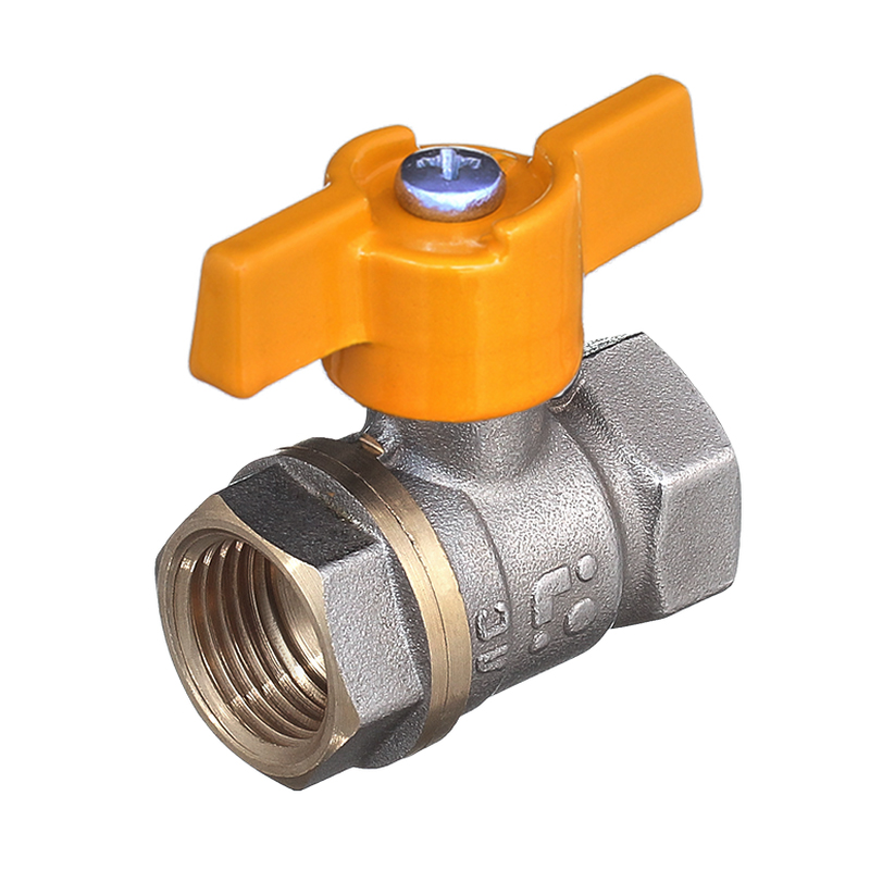 Кран шаровый БАЗ 1/2 г/г бабочка газовый (ЖЁЛТЫЙ) НИКЕЛИРОВАННЫЙ 11Б27П Ду15 А 10/1 (1/96)