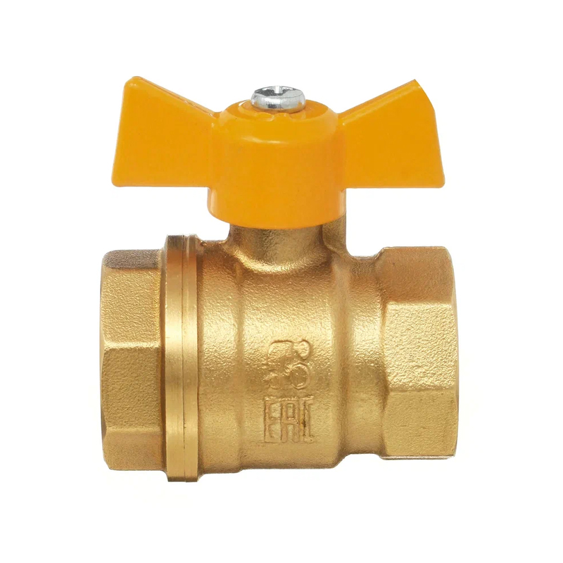 Кран шаровый БАЗ 1/2 г/г бабочка (ЖЁЛТАЯ) газовый 11Б27П Ду15 А 10/1 (1/60)